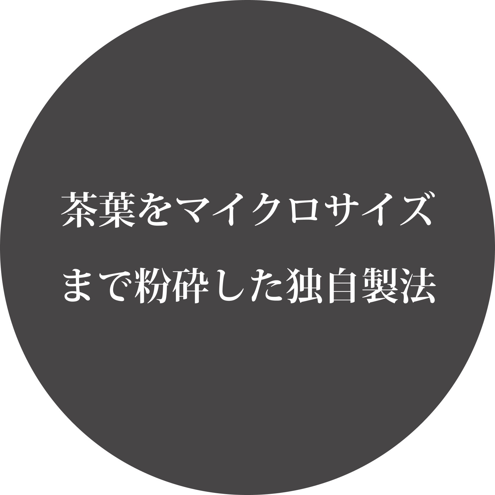 独自製法により、茶葉をマイクロサイズまで磨くことで、粉末のお茶なのにざらざらせず、すっきりとしたのど越しを実現。